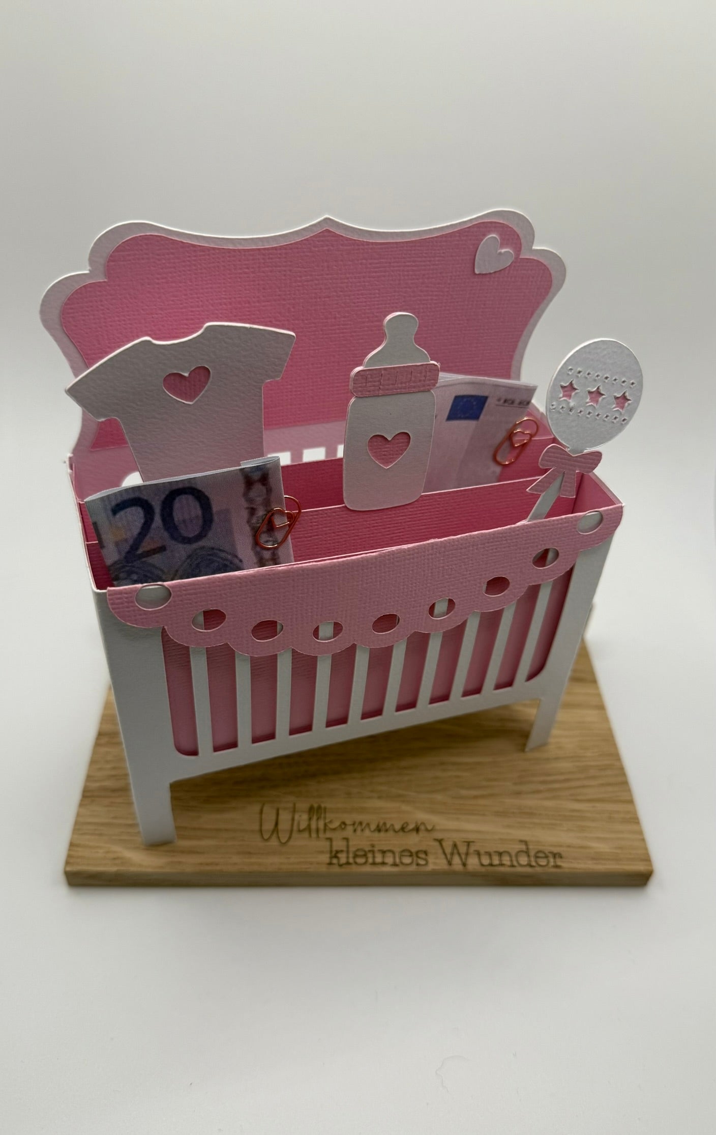 🍼 „Geldgeschenk Babybett – Willkommen kleines Wunder“
