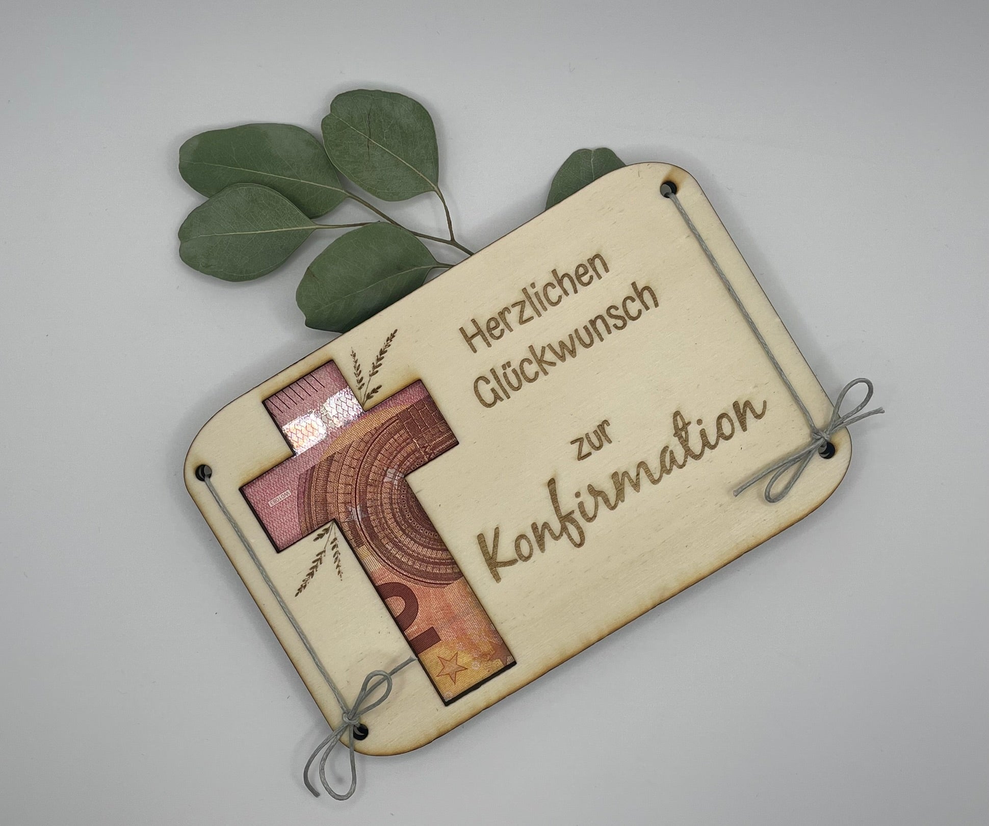 🌿 Holz-Geschenk zur Konfirmation ✝️💶