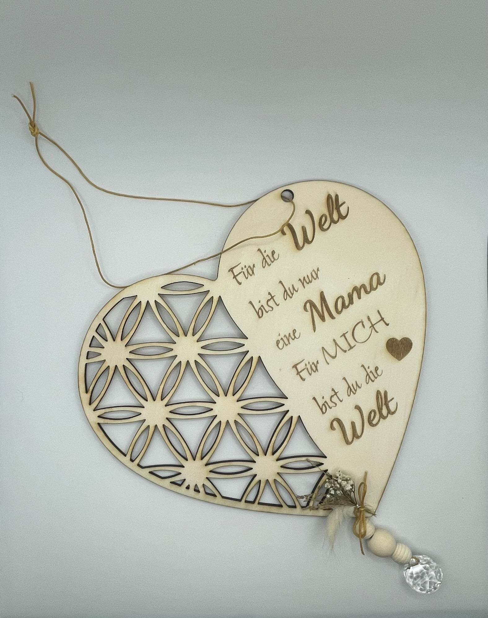 Gefertigt aus leichtem Material und mit filigranen Details versehen, zaubert er bei Sonnenschein funkelnde Reflexionen 🌈 und bringt so Wärme und Freude in jedes Zuhause oder in den Garten. Mit seiner herzförmigen Gestaltung und liebevollen Gravur wird er zum besonderen Blickfang, der immer an die Wertschätzung erinnert.